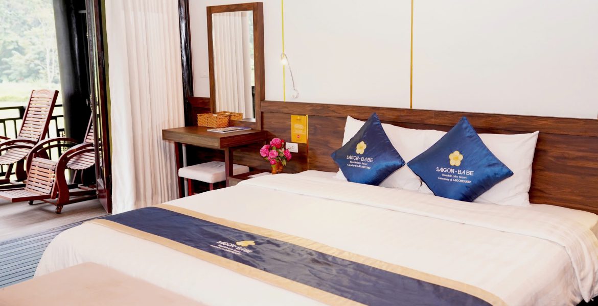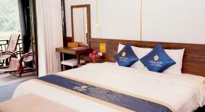 The Eco-Deluxe room is built entirely from natural wood, helping to keep the air inside cool and fresh. The spacious balcony overlooking the mountain, a great place to relax and enjoy the fresh air.